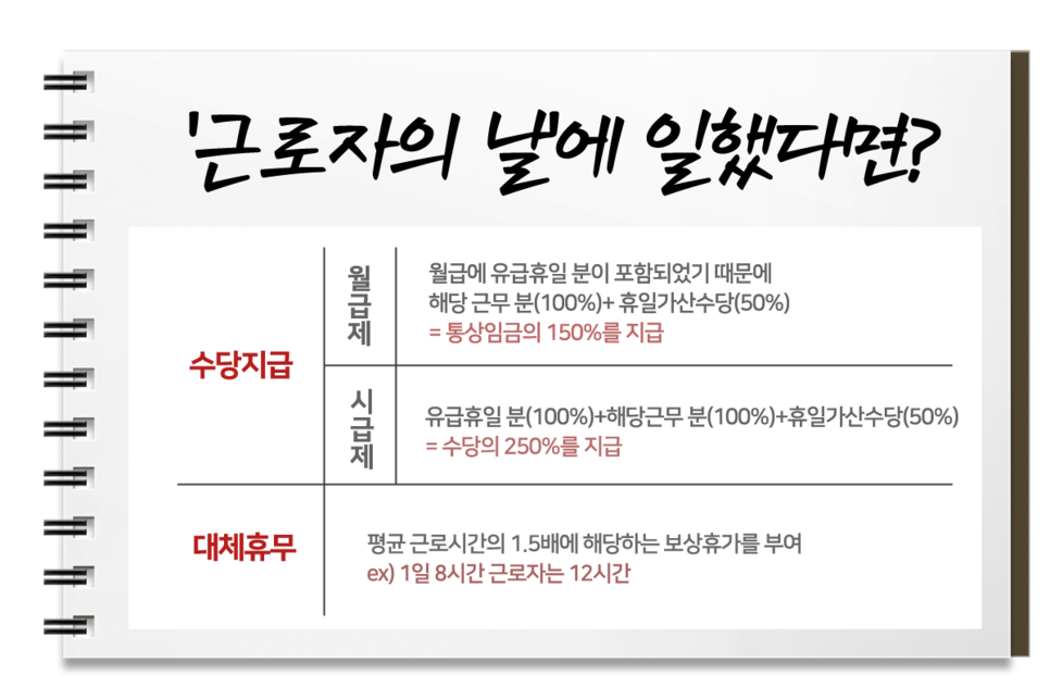 근로자의 날 (5월1일)= 법정휴일(유급휴일) 근로기준법상 유급휴일입니다.