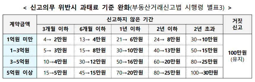 - 신고를 하지 않을 경우 과태료가 부과됩니다. 계약 금액에 따라 다르므로, 반드시 기한 내에 신고해야 합니다.