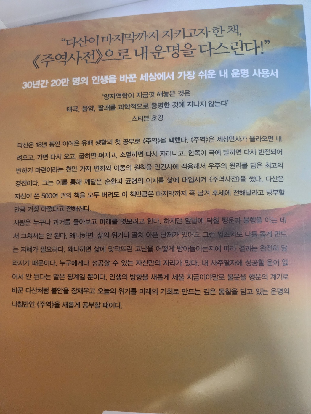 특히, 다산 정약용의 이야기를 통해 주역이 어떻게 인생의 시련을 극복하는 데 도움을 줄 수 있는지를 보여줍니다.