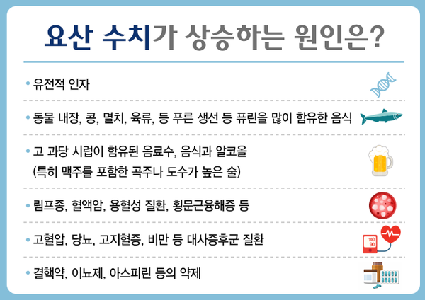 요산 수치가 높아지면 통풍이라는 질병에 심각하게 노출될 수 있습니다.