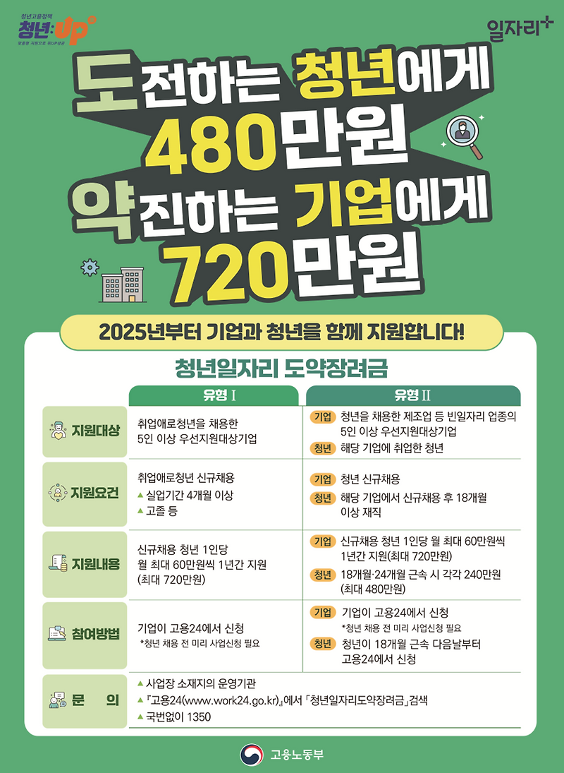 - 2025년 고용지원금 중 가장 중요한 청년 일자리 도약 장려금은 2025년 1월 23일부터 신청이 가능하다.