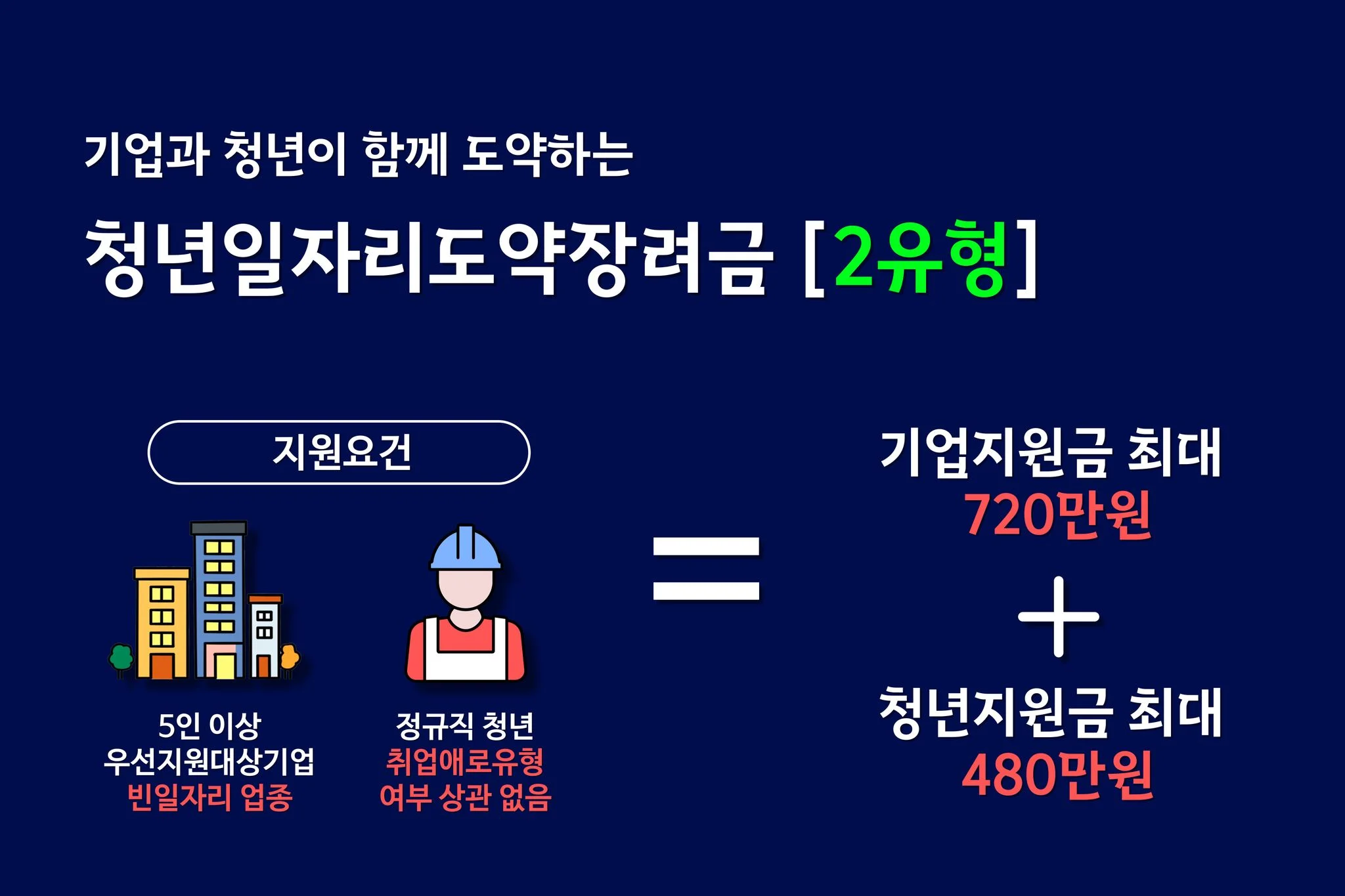 - 기존에는 1년 동안 720만 원을 지원하였으나, 제조업의 경우 480만 원을 추가로 지원받을 수 있다.