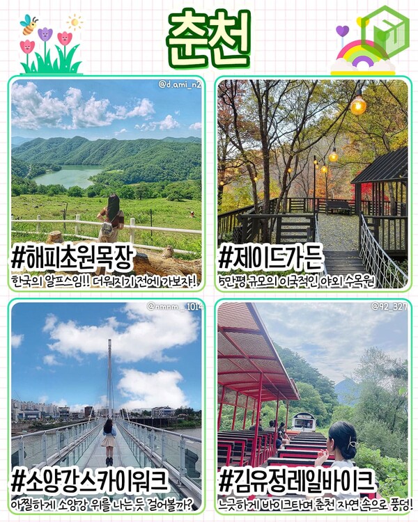 춘천은 자연경관이 뛰어난 여행지로, 여유롭게 즐길 수 있는 여러 명소가 있습니다.