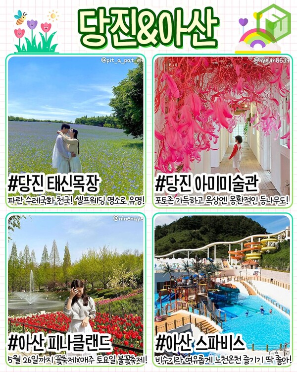 아산과 당진은 아름다운 꽃밭과 예술적 공간이 많은 지역입니다.